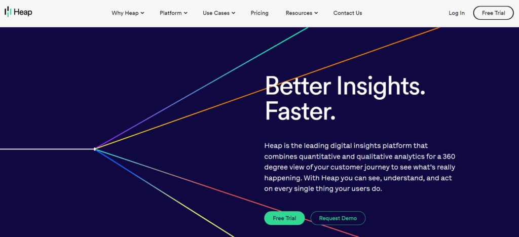 Heap has an interesting perspective on improving your business revenue without spending high costs on marketing. It is a brand solely focused on using qualitative and quantitative data to analyze a 360-degree view of your customer journey; it helps you locate your customers’ navigation patterns and how they move through the funnel.