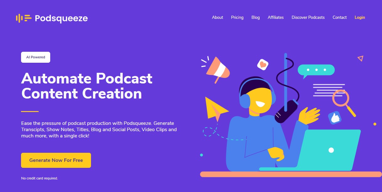 Podsqueeze is an AI podcast tool that uses advanced technology to generate transcriptions from podcasts. These transcriptions are further used to be converted into show notes, timestamps, and social media posts.