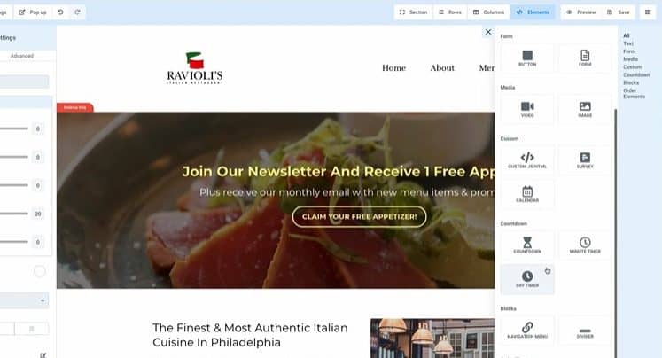 This page builder is also drag and drop. You can add columns, rows, sections, pop-ups, and pretty much everything that you can do with ClickFunnels but as mentioned earlier it’s not as easy to use.