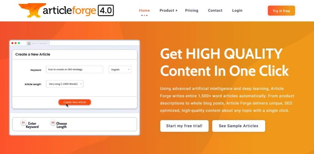 And if you’re thinking about getting started with the new updated version of this powerful article generator, here you can start the Article Forge 4.0 free trial where no credit card is required.