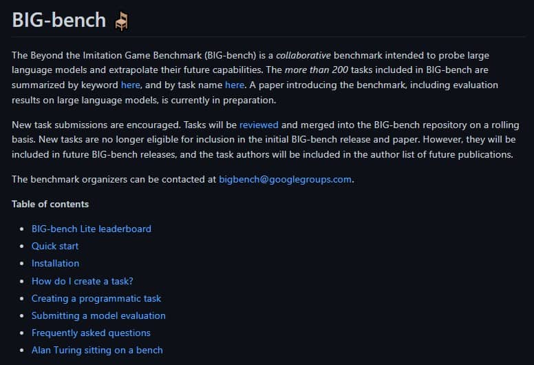 Google has a collection of really tricky tasks called “Beyond The imitation Game Benchmark” or BIG-Bench in short.