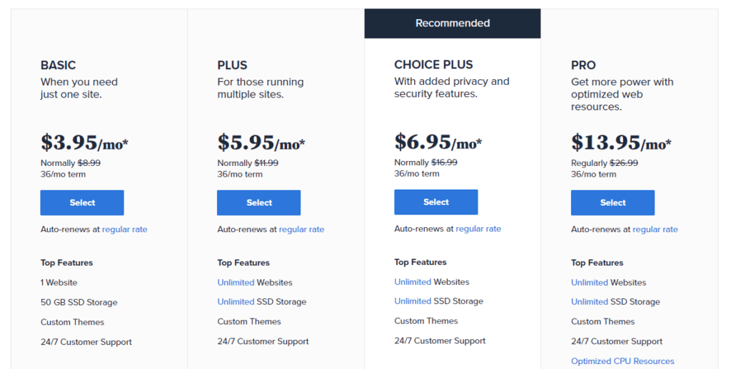 So if you plan to have websites long into the future you can go at 36 months and what that’s going to do is lock you in at $3.95 per month for 36 months.