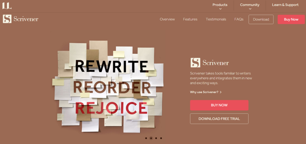 Word processor and outliner, Scrivener is aimed squarely at writers. Scrivener is a software program that helps you keep track of your writing, notes, and metadata. The user can categorize their thoughts, ideas, sources, and even entire documents for quick retrieval and review.