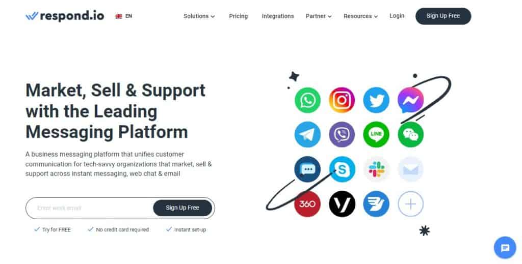 Respond.io is a true all-in-one conversational marketing platform that unifies customer communication across instant messaging, web chat, and email for businesses of all sizes that market, sell, and support.