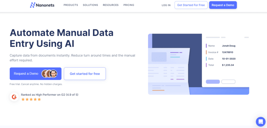 Nanonets uses machine learning to pull out structured or semi-structured data from documents. This could be anything from names and addresses on forms to specific pieces of information in text documents.