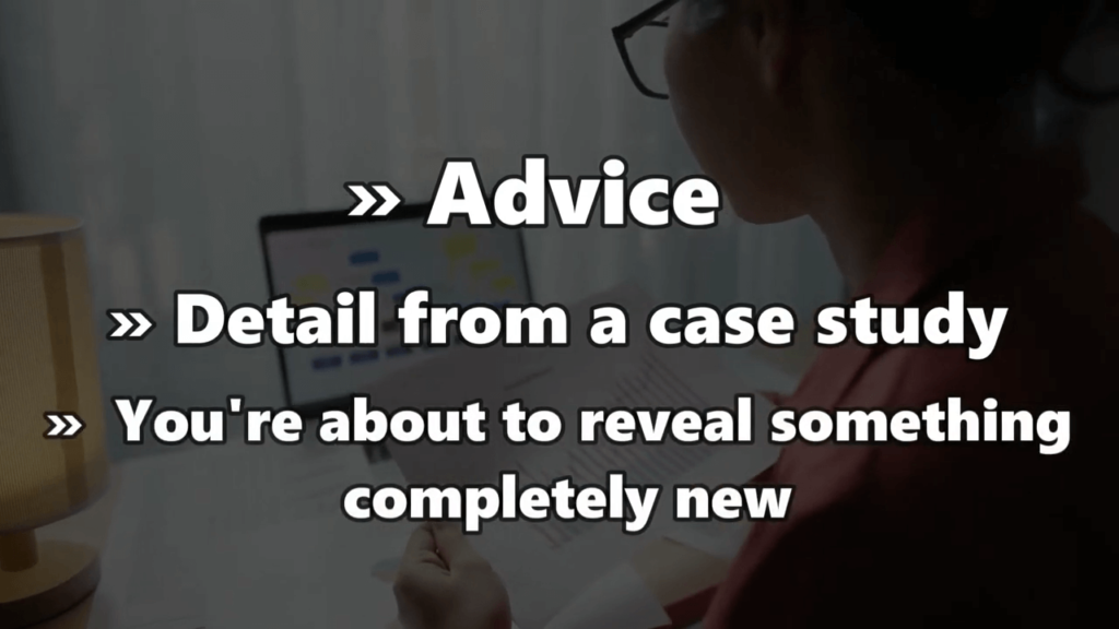 You definitely don’t want to just repeat what you stated at that start so highlight anything particular from the video, such as advice, a detail from a case study, or that you’re about to reveal something completely new.
