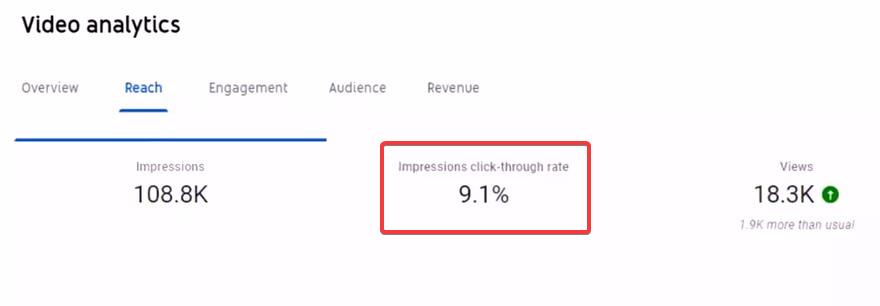 You can check your CTR inside of the YouTube studio and the average CTR for a good performing video is around 6 to 10%.